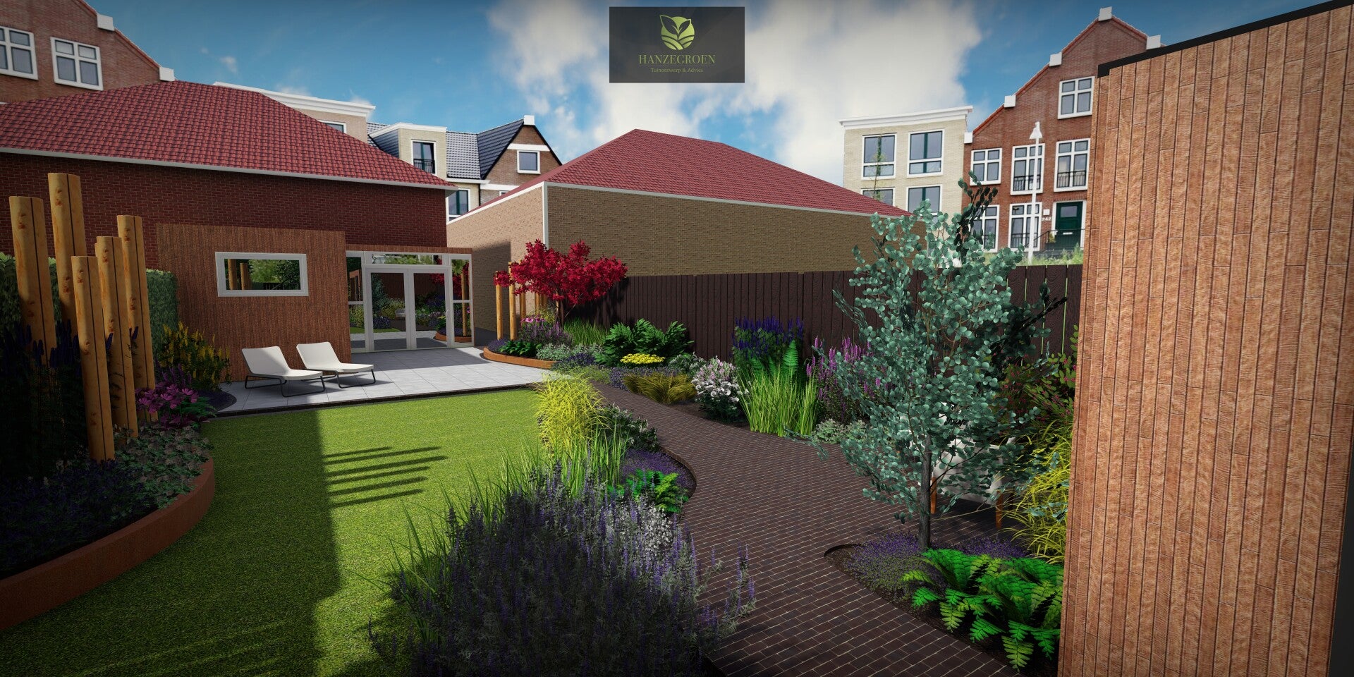 Moderne tuin met robuuste materialen